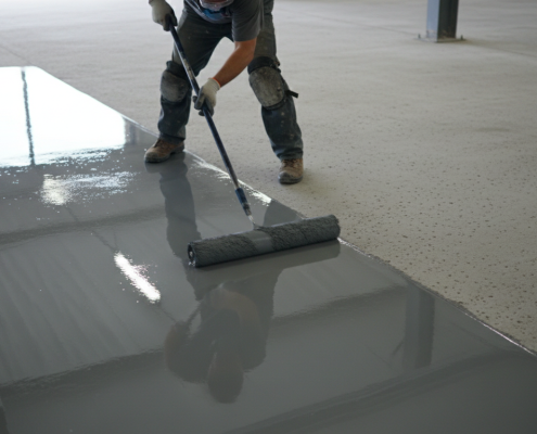 A rétegek közötti száradási idők pontos betartása sokat számított, mert így a bevonat nemcsak esztétikus, hanem egyenletes terhelhetőségű lett. A gondos előkészítés hosszú távon stabilabb felületet eredményezett.